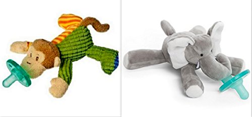 -. Feature : Wubbanub pacifiers with attached Mary Meyer Mango Monkey and Elephant / Super soft, 6-inch plush paci-and-holder all in one, reduce the chance of losing your baby's pacifier, no pacifier cords or clips / Soft and cuddly, with arms and legs that are easy for little hands to hold on to. / Mango Monkey and Elephant Wubbanubs are Latex-free, medical grade silicone Soothe pacifier; BPA, PVC and Phthalate free / NOTE: Wubbanubs come packaged in a clear cylinder box. Machine washable in mesh laundry bag on gentle cycle, air dry