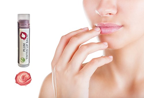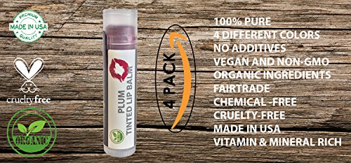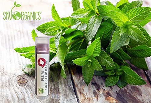 Organic Tinted Lip Balm by Sky Organics - 4 Pack Plum Color -- With Beeswax, Coconut Oil, Cocoa Butter, Vitamin E- Minty Lip Plumper for Dry, Chapped Lips- Tinted Lip Moisturizer. Made in USA