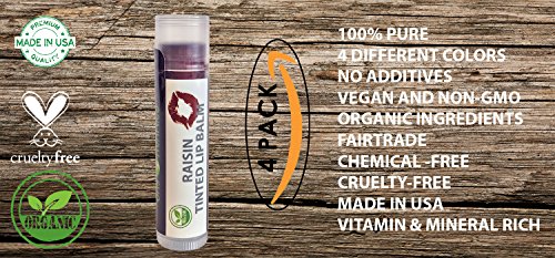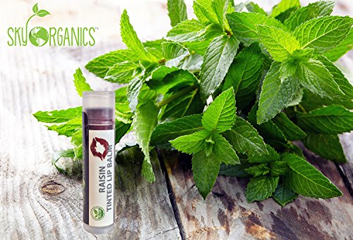 Organic Tinted Lip Balm by Sky Organics - 4 Pack Raisin Color -- With Beeswax, Coconut Oil, Cocoa Butter, Vitamin E- Minty Lip Plumper for Dry, Chapped Lips- Tinted Lip Moisturizer. Made in USA