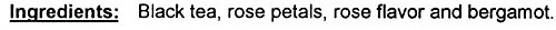 -. Feature : Rose Earl Grey- Delicious and romantic earl grey tea with roses! / Whole leaf black tea, rose petals, rose flavor and bergamot. / Good early to mid- morning tea. / High caffeine. Perfect breakfast tea! / Being in the World®: Mahamosa donates 50% of after-tax net profits to charity!