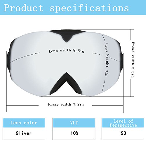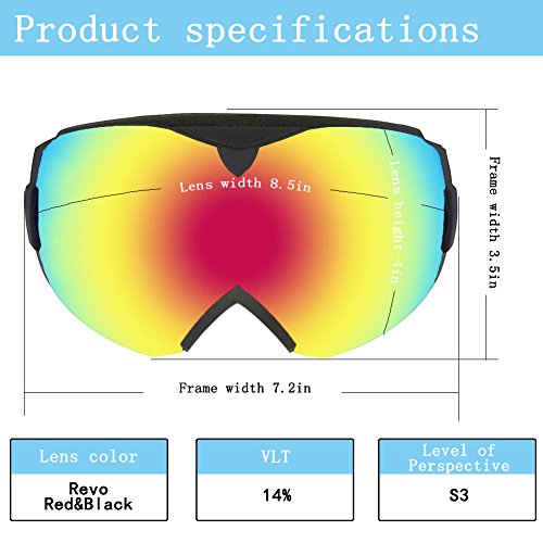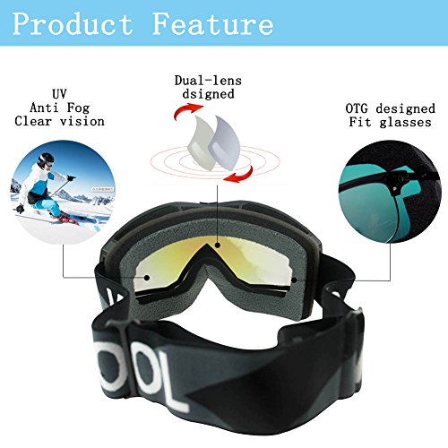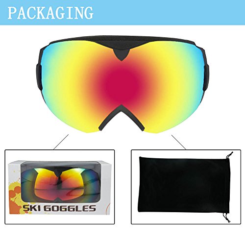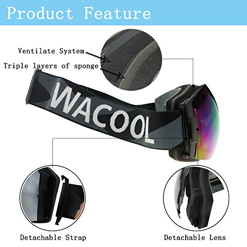 Studio : WACOOL Publisher : WACOOL Binding : Misc. Product Description New Product Launch Promotion! The Price Will Rise Soon! Order it now! The WACOOL Ski Snowboard Goggles are made with ultimate comfort and visibility in mind. The spherical panoramic lens gives you a truly unobstructed, wide field of view. Main Features: - Detachable double Spherical lenses. - Over the glass design. Comfortably Fits Over Most Glasses. - Anti-fog and two way venting for clear and clean vision. - Comfortable triple-layer foam for face fitting. - 100% UV400 Protection. - PC lens TPU frame for impact-resistance. - Elastic strap for better helmet compatibility. Specifications: - Lens Material: PC - Frame Material: TPU - Lens Style: Spherical double layers - Lens Finish: Real REVO Coating / Silver Coating - Goggle Size: 7.5" Width, 4" Height Notice: - Do not use finger or rough cloth to wipe and clean the lens as they will either stain or scratch the lens. - Keep the goggle in the pouch or box instead of facing on the ground or desk. - Do not use mascara or other oily substance in case lens gets dirty. - Air-dry the goggles after every snow sport e.g. skiing, snowboarding and etc. - Do not wipe the inner lens which will invalidating anti-fog function. Package Includes: - Goggles x 1 - Carrying Pouch x 1 (Work as cleaning cloth) 0