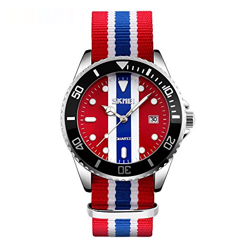 -. Feature : FASHION SLIM Nylon Band and DURABLE ALLOY CASE: high quality nylon band is hard to be broken and it's quite soft for wearing comfortable. Alloy case provide waterproof and super hard to be damaged / 41*41*10mm case with HARDNESS MINERAL GLASS, sturdy and scratch resistant, protect watch from carelessness of daily life / Daily Water Resistant: 3ATM (3 atmospheric pressure), 30 meters Waterproof. It's used to be washing or rain, sweat, for only water splash on the surface not under watch like swimming and diving. Notes: Don't press button on the side when watch is in the water / JAPANESE MIYOTA CITIZEN MOVEMENT with Analog display, keep time precise and accurate / Purchase Guarantee: We provide 100% Refund and 12 month warranty. If you have discontent, please send emails without hesitation, we'll try to solve any problems or 100% money back; Package: Watch×1, Box×1, Instruction×1