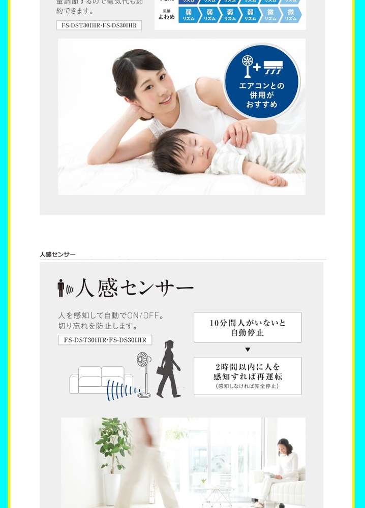 ●温度センサーは室温を感知して自動で風量を調節するので「エアコン」との併用がおすすめ。