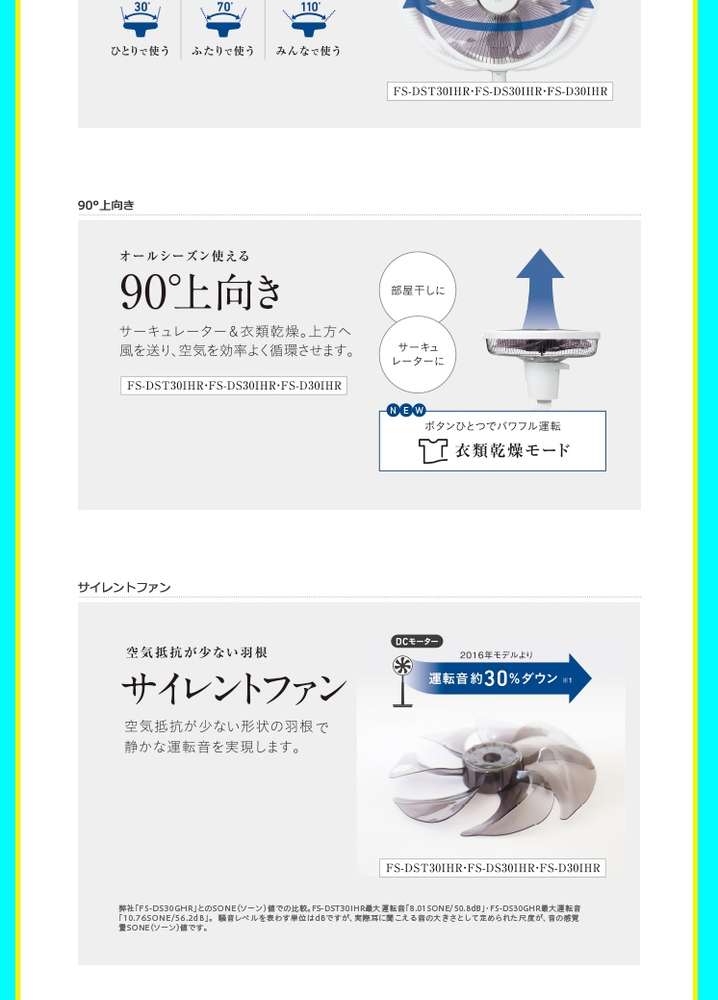 ●左右首振り:左右首振り可 選べる首ふり角度30度・70度・110度