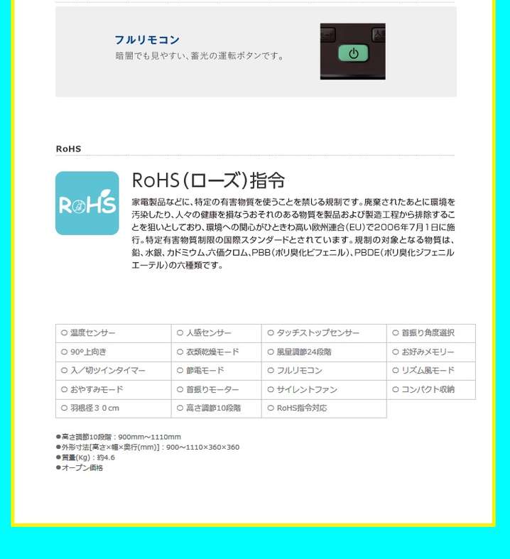 ●扇風機リモコン・本体スイッチ:リモコン有