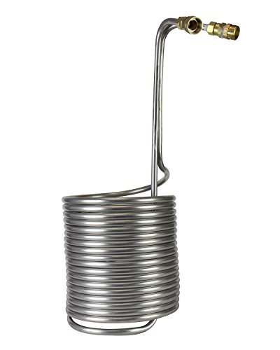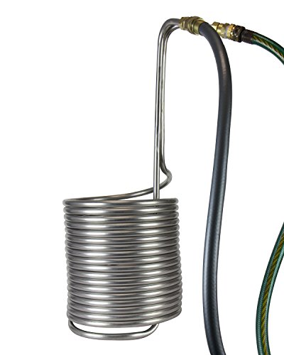 STAINLESS STEEL CONSTRUCTION: This chiller is constructed in 50' of 1/2" stainless steel tubing and wounded into a tight stack of coils. Stainless steel is known to be more durable towards wear and tear and easier to clean than copper, the cost is usually cheaper as well.