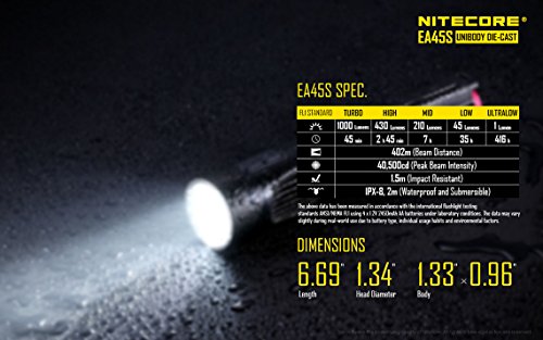 Nitecore Explorer EA45S Die-Cast LED Flashlight - 1000 Lumen - High Quality Aa Duracell Batteries, LumenTac Battery Organizer