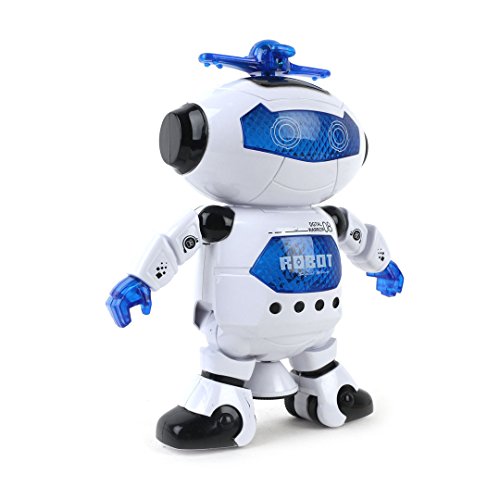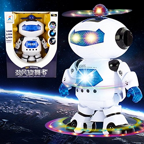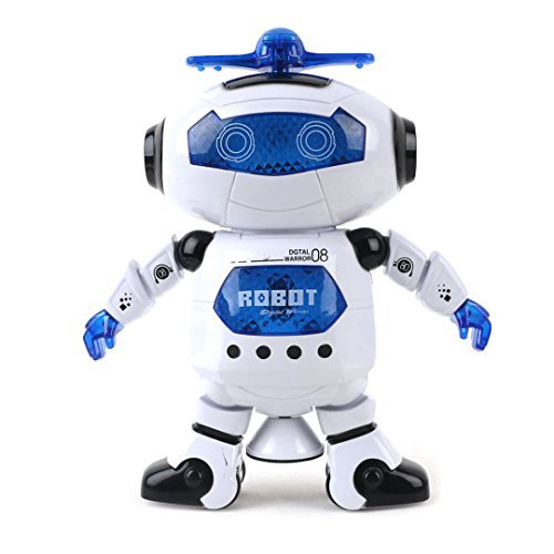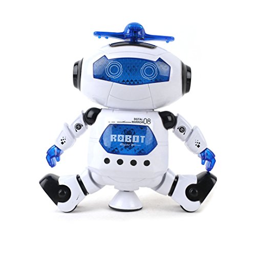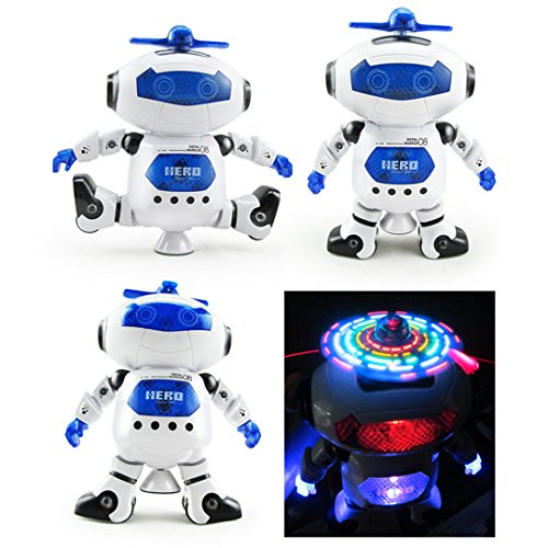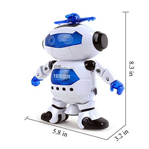 Robot size: 5.5 x 2.7 x 8.3 inchesOpen the power switch, the music play automaticallyAt the same time, robot dance flexibly with music and lightRequires 3 1.5V AA batteries; WARNING: CHOKING HAZARD-Small parts. Not for children under 3 yearsDear Customers, Each item have been checked before sending, if you're satisfied with our items, please give us a positive feedback.if have any problems, please feel free to contact us before leaving a negative feedback.The best way to contact us is through Amazon messages, we check our message regularly.We will try our best to solve the problem and offer the best service to you.Feature