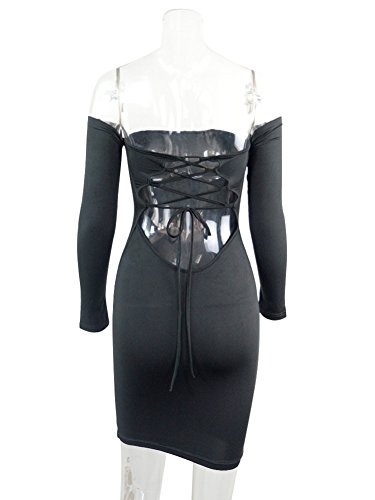Features: Sexy off shoulder knitted top, lace up,long sleeves, slim fit, slash neck, mini style.