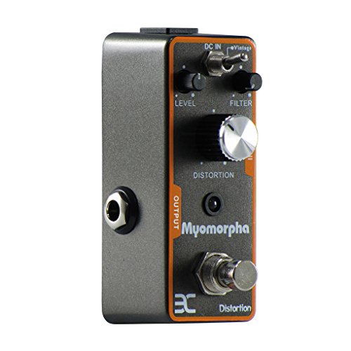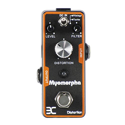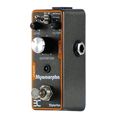 Studio : EX-AMP Publisher : EX-AMP Product Description Feature:* 2 working modes: Vintage / Turbo* With 3 functional knobs: Level knob/ Filter knob/ Distortion knob, to control the performance of the distortion sound.* LED indicator instructs effects or bypass status of Myomorpha effect, when the led is lit up, the effects is on.* Small and exquisite design with full metal shell.* True bypass style, with durable jacks and foot switch.* Can be used Negative DC 9V as Power Supply.Specification:Myomorpha Distortion Effects PedalEffect Modes: Vintage / TurboInput: 1/4" mono jack (impedance: 1M Ohms)Output: 1/4" mono jack (impedance: 1k Ohms)Power Requirements: AC adapter 9V DC (center minus plug)Current Draw: 3 mADimensions: 93.5mm x 42mm x 52mmAccessories: Owner's ManualPlease Read Manual Before Operating.Package Includes:1 x Myomorpha Distortion Effects Pedal1 x Manual1 x Bag 0