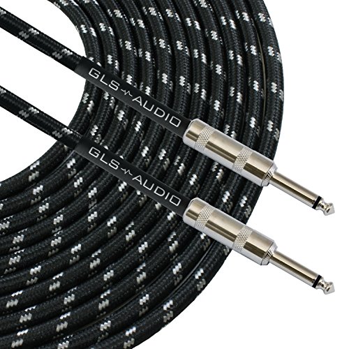 GLS Audio 10 Foot Guitar Instrument Cable - 1/4-Inch TS to 1/4-Inch TS 10 FT Black Gray Tweed Cloth Jacket - 10 Feet Pro Cord 10' Phono 6.3mm - SINGLE