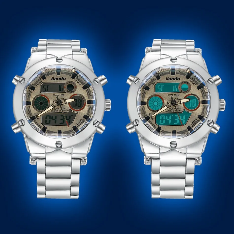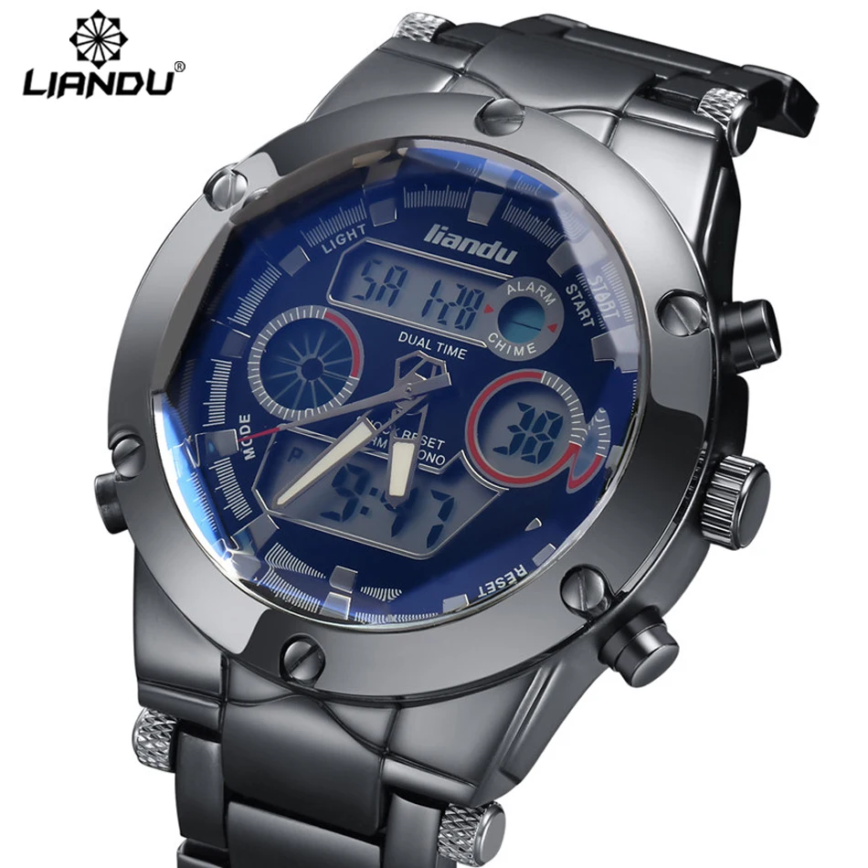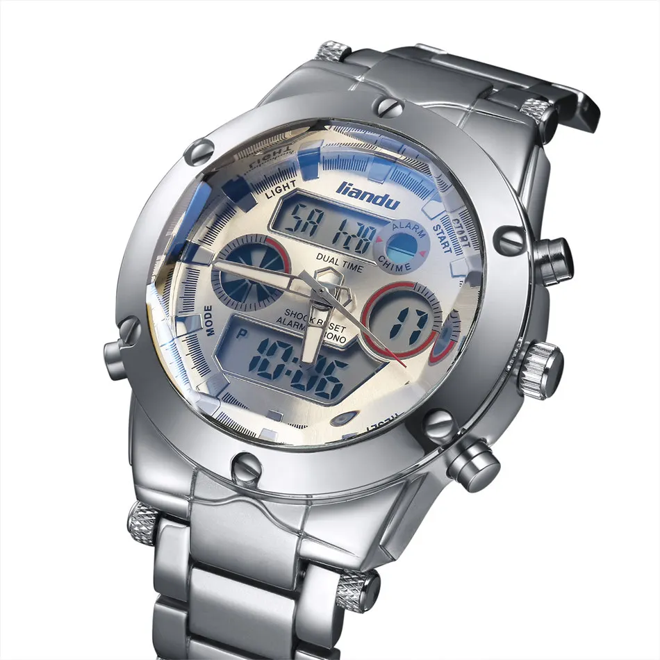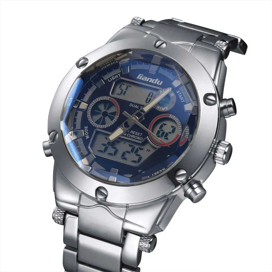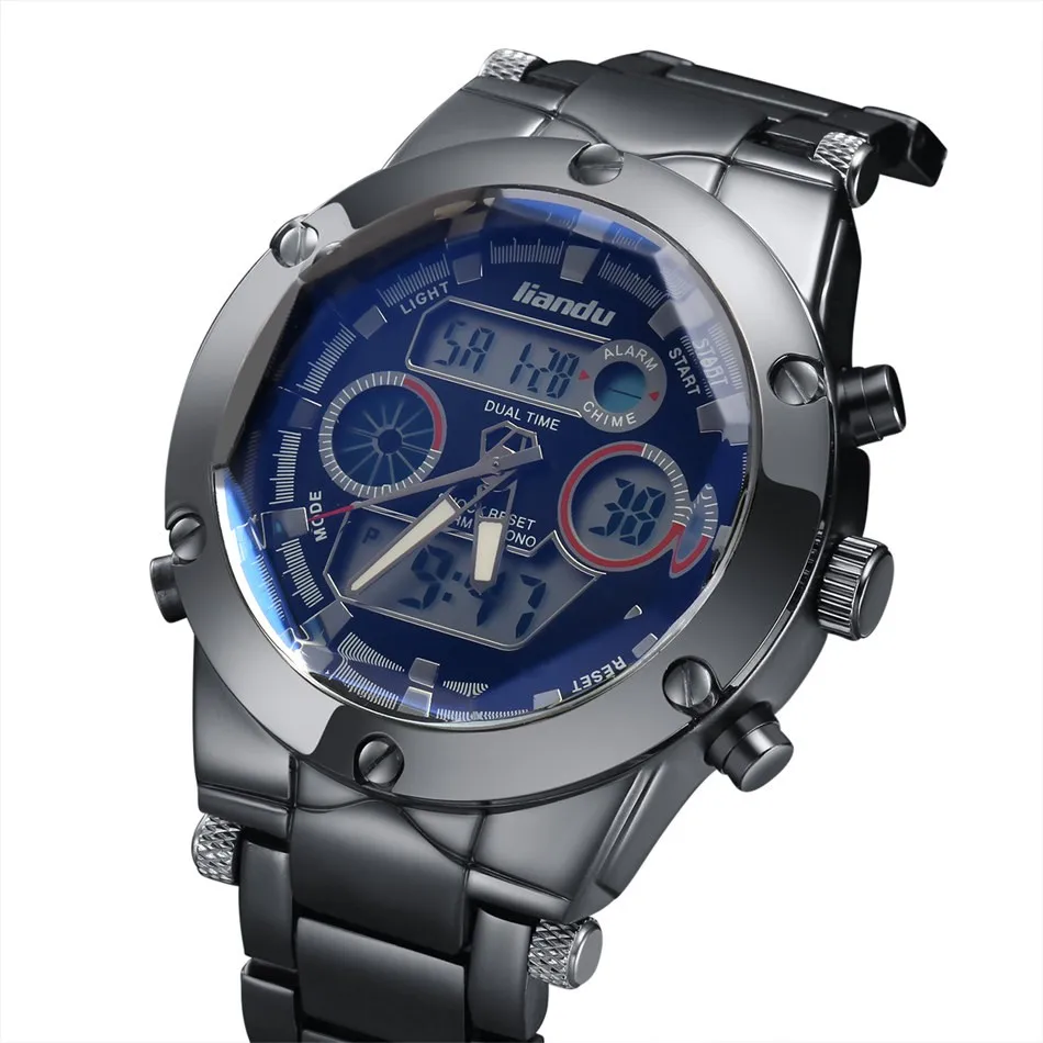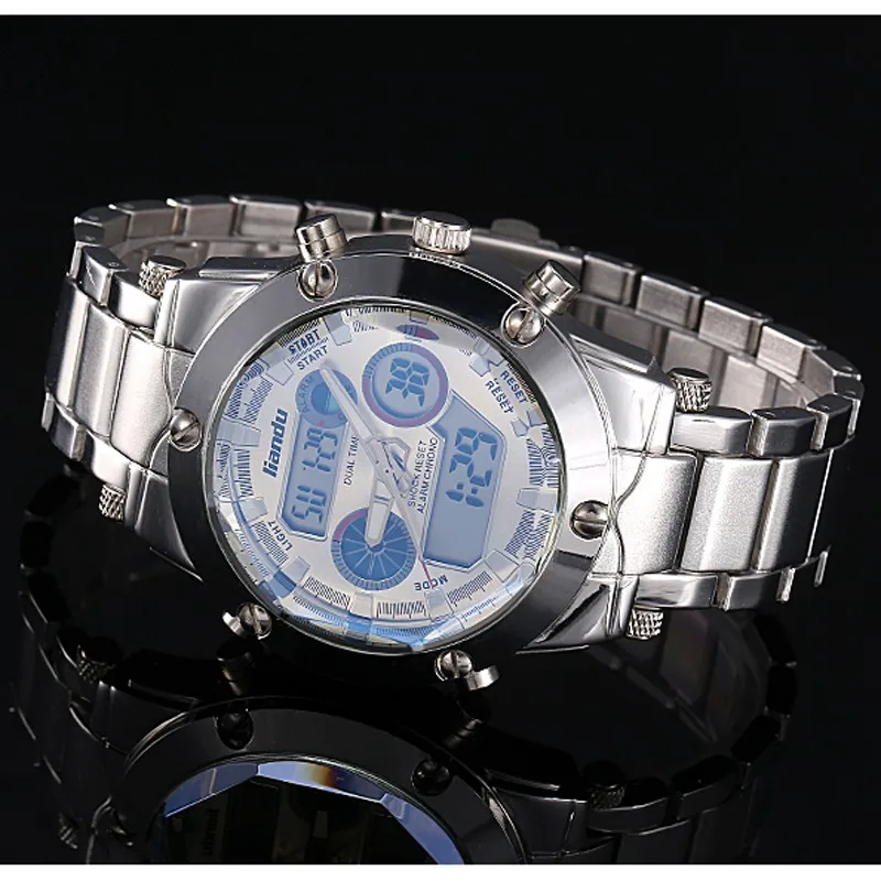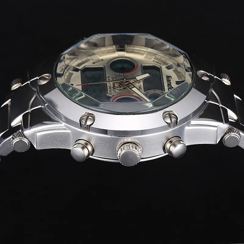 Feature:Water Resistant,LED display,Multiple Time Zone,Auto Date,Back Light,Complete Calendar,Alarm,Chronograph