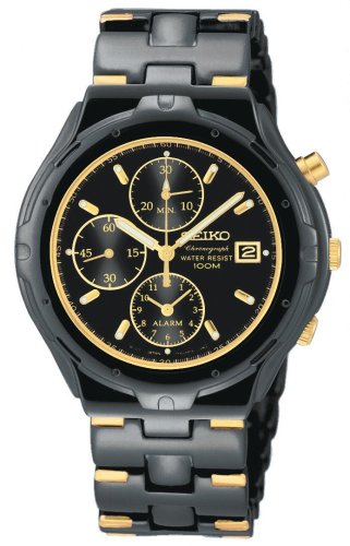 -. Title : Seiko Men's SNA283 Alarm Chronograph Black Ion Watch