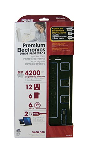 Prime Wire & Cable PB504142 12-Outlet Premium Electronics with 14-3 SJT 6-Feet Cord, Black
