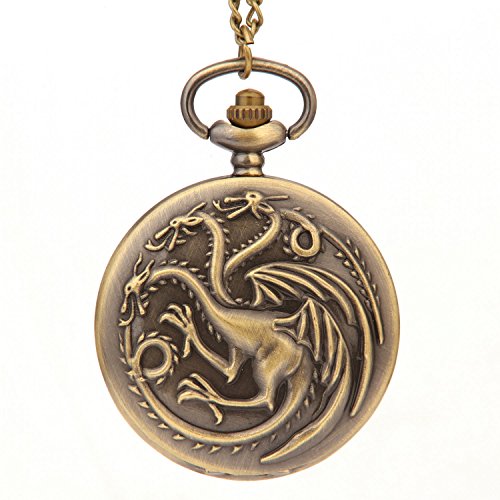 -. Title : YouYouPifa Fashion Three Dragon Animal Pattern Round Embossed Big Pocket Watch