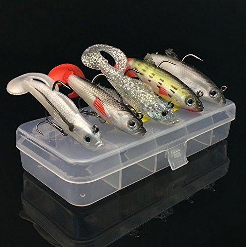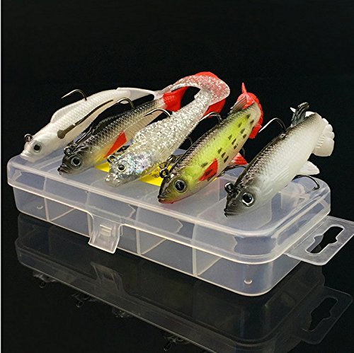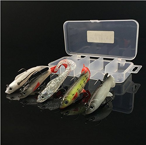 -. Feature : 5 LifeLike Minnow Fishing Lures with Tackle Box / High Quality ABS Construction, Black Nickel Round Bend Treble Hooks / Soft plastic material / Packing :5pcs