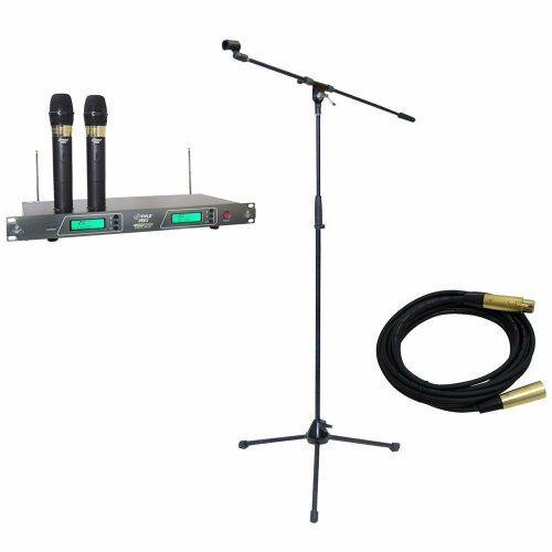 -. Title : Pyle Mic and Stand Package - PDWM2550 19'' Rack Mount Dual VHF Wireless Rechargeable Handheld Microphone System - PMKS2 Tripod Microphone Stand w/Boom - Ppmcl15 15Ft. Symmetric Microphone Cable Xlr Female To Xlr Male