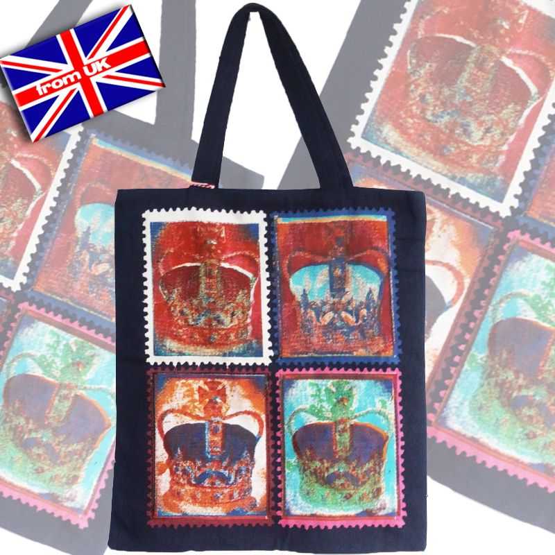 イギリス直輸入お洒落なスタンプ柄トートバッグ。 しっかりとしたハリのあるキャンバス地なので お買い物にも最適♪ ※お願い こちらの商品は染料のムラやシミ等が見られますが 不良品ではございませんので予めご了承ください。