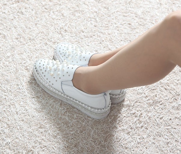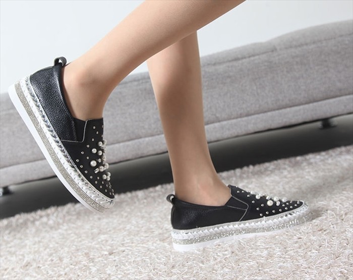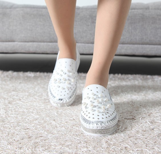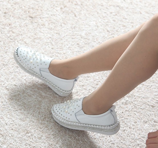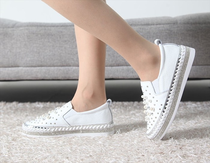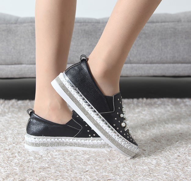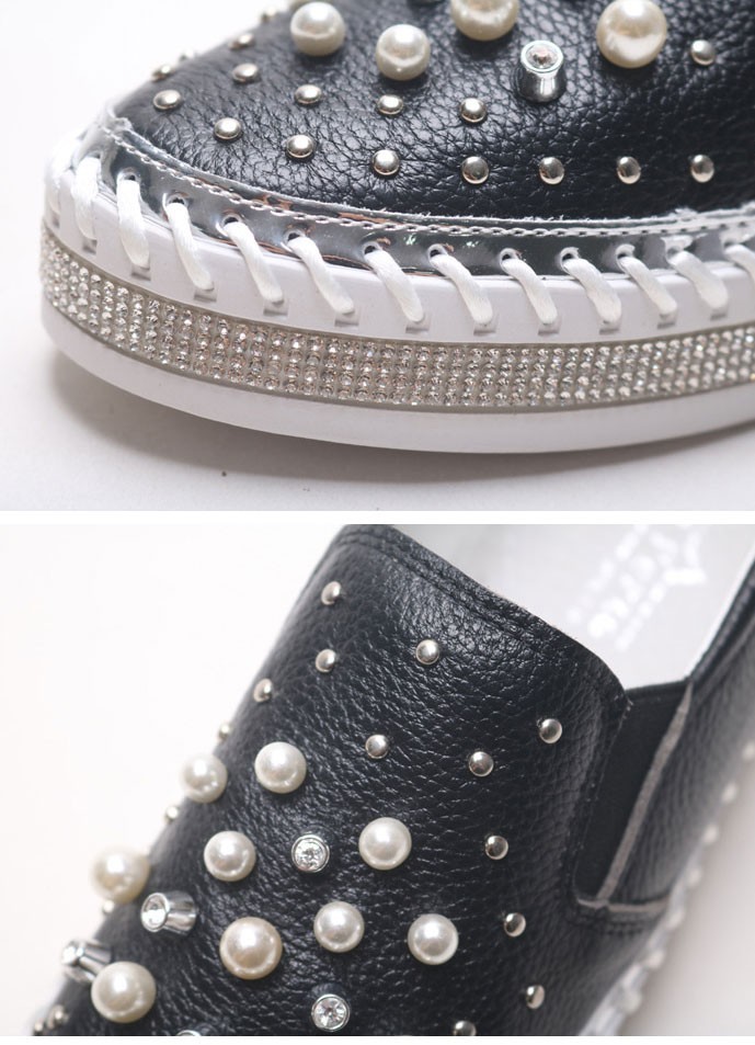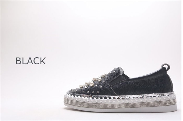 商品名:スリッポン レディース スニーカー 本革 ビジュー 2017 秋ファッション 靴 婦人靴