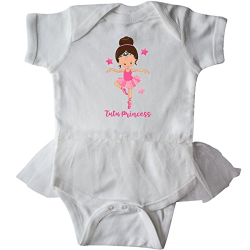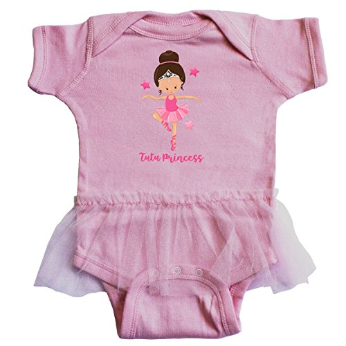 Product DescriptionInfant Tutu Bodysuit with cute cartoon ballet dancer with a ballerina bun wearing a tiara, toe shoes and pink tutu says TUTU PRINCESS. Gift for little prima ballerinas and future ballerinas.0