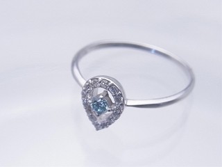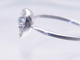 センターにアイスブルーのダイヤモンドをあしらった綺麗なリングです。
