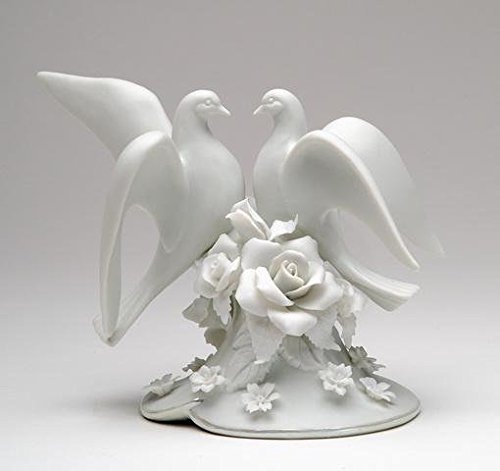 5 Inch Two White Dove and Rose Flower Themed Cake Topper Decoration