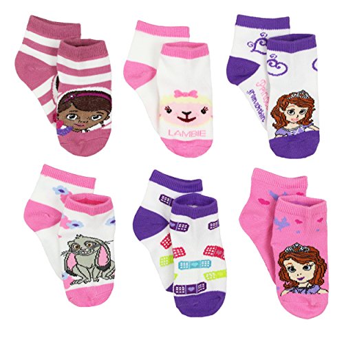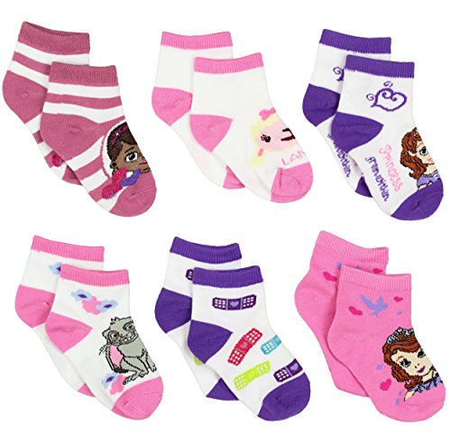 Your little sweetie will be looking adorable like Doc McStuffins, and cute like Sofia the First, wearing these Disney Junior toddler quarter style socks! Six pairs provide variety and excitement with each pair featuring different colors and graphics of Doc McStuffins and Sofia the First. These Disney Junior socks are the perfect accessory to any outfit!Feature