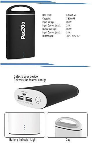 -. Binding : Wireless Phone Accessory -. Brand : Pac2Go -. Feature : Ultra slim power bank with rechargeable Lithium-ion Polymer 7500mAh battery supporting over 500 recharge cycles taking 2-3 hours with super long standby time. Provides over three full charges to iPhone 6, two full charge of Samsung S6 and other types of smartphones. / Stylish ergonomic and compact design with fireproof and rubberized oil finish and detachable hook. 4 LED light power indicators show charging status and battery power remaining. The smallest and lightest multi port power charger can easily fit in your pocket or purse or hook on your backpack or belt loop with the detachable hook. / Smart connect technology auto-detects connected device for the fastest charging. Built-in proprietary software to control temperature, voltage and current. Auto safety cut-off with built in over-charge, over-current, over-discharge, short-circuit protection. High efficiency and lower static power drain insuring the portable charger will work when you need it. / FCC, CE, RoHS, SGS Certifications backed with 18 month guarantee and strong customer support. / Package includes: 1 Pac2Go 7.500mAh Mobile Power Charger, 1 micro USB Cable, 1 detachable Mobile Power Charger hook, 18 month hassle free guarantee. (Does not include 30 pin or lightning Apple adapter) -. Label : Pac2Go -. Manufacturer : Pac2Go -. Model : P2GPB-03 -. MPN : P2GPB-03 -. PackageQuantity : 1 -. PartNumber : P2GPB-03 -. ProductGroup : Wireless -. ProductTypeName : WIRELESS_ACCESSORY -. Publisher : Pac2Go -. Studio : Pac2Go -. Title : Mobile Power Charger from Pac2Go Portable Charger 7500mAh External Battery Pack Power Bank with Smart Connect Technology for iPhone, iPad, iPod, Samsung, Smartphone and Tablet Battery Backup (Black) -. Warranty : 18 months limited warranty from date of purchase