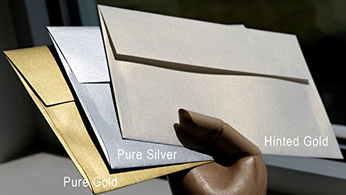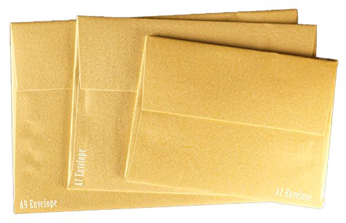 -. Feature : Color name: Pure Gold / Color description: Smooth Shimmery/Metallic Luxurious Gold / A9 Envelope dimensions: A9 (5-3/4-x-8-3/4-inches) / insert must be smaller than envelope dimensions. / Letter paper folded in half fits perfect into A9 envelopes / Envelopes made from paper basis weight: 118 GSM (32/80lb Text) / Square Flap - Moisten to seal