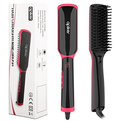 2 in 1 Ionic Hair Straightener Brush, Apiker Ceramic Heated Brush with PTC Fast Heating Technology, Adjustable Temperature from 265℉-450℉ for All Hairs,...