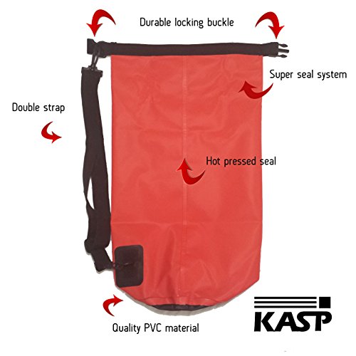 -. Feature : ✔ LIGHTWEIGHT & DURABLE PVC MATERIAL - Our bags are made with a durable PVC vinyl that is heat sealed providing a stitch free watertight bag you can take anywhere - So you can go Camping, Backpacking, Kayaking, Hiking, Snowboarding, Rafting, Fishing, Boating, Skiing, Tubing, Sailing, Swimming, Canoeing or Beach Days / ✔ 100% WATERPROOF GUARANTEE - Our dry sacks protect your personal possessions with a waterproof seal. You can also fill the bag with water or ice & use the bag as a storage device/ice bucket that won't leak. The KASP dry bag is a multipurpose bag designed for adventure. / ✔ REMOVABLE SHOULDER STRAP - You can adjust the strap to meet your requirements or height. Each strap has two clips enabling easy attachment to Bikes, Boats, Chairs, Tubes and Backpacks - The top fold down can also be attached if you forget the strap! / ✔ LARGE 15L DRY SACK - The perfect size for safely carrying large & small items - Most dry bags sold on Amazon are either too small to fit everything you require or to large & bulky. Our 15L dry bag is perfect for large & small items for any outdoor enthusiast / ✔ ROLL TOP CLOSURE SYSTEM - Protects contents from water, dirt, dust and sand - Easy to roll & simple to clip - We have designed our dry sack to be quick & easy to use. Free gift silicone elastic rubber strap for every purchase - Use the strap to secure a range of items safely & securely during your activity