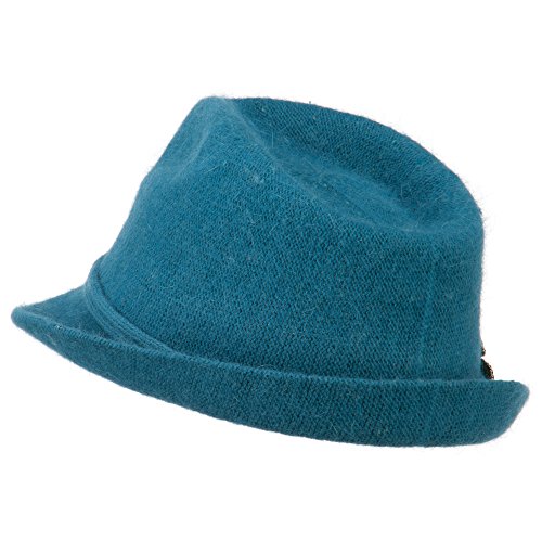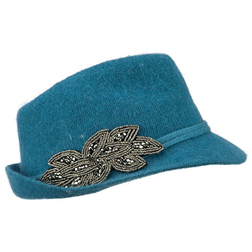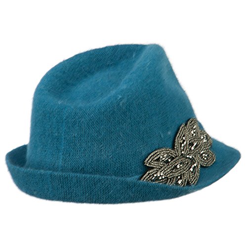 -. Title : Ladies Beaded Motif Angora Fedora - Blue