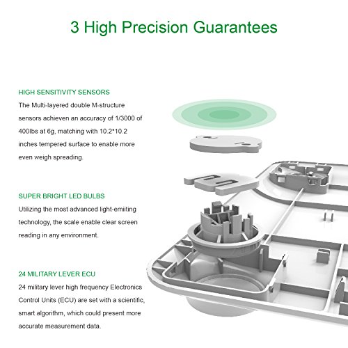 Specifications: -Size:10.2*10.2*1 inch/260*260*27mm -Capacity:6.6-400lb/3-180kg(11lb/5kg to turn on scale) -Batteries:3*1.5VAAA -Division:0.2lb/0.1kg -Fitness levels:ordinary,Amateur and professional