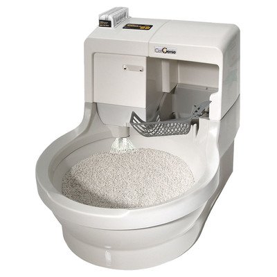 Studio : petnovations-- Cat Genie Publisher : petnovations-- Cat Genie Binding : Misc. Product Description CatGenie The world's only self-flushing, self-washing cat box. You'll never touch, change or buy cat litter again. The CatGenie Secret? Washable Granules not litter. Collecting cat waste in a box of litter is unsanitary. Cleaning the mess out is unpleasant and carrying heavy cat litter in and of the home is just a plain waste. The CatGenie is dust, germ, odor, and litter free and automatically washes, sanitizes and dries itself. CatGenie has a Two-Year Warranty. Easy DIY set-up. Recommended setup locations: Bathroom (toilet) -If you have a rigid water line in your bathroom, you may need to replace it with a flexible one) or Utility/laundry room. When you purchase the CatGenie, everything needed to make your home litter free is included: The only tools needed are a wrench or a pair of pliers. Some non-standard hookups may require additional parts not provided by PetNovations, Inc. Included supplies should last over 3 months for 1 cat and about 2 months for 2 cats. More Cat Activation Choices- Cat 1 - 14 straight hours active, 10 hours sleep time (you choose when it is on) with a 10 minute delay after the cat uses it to clean Cat 2 - 14 straight hours active, 10 hours sleep time (you choose when it is on) with a 30 minute delay. For multiple cats giving them time to use it before it cleans Cat 3- 24-hours active, with a 10 minute delay after the cat uses it to clean Cat 4 ? 24-hours active with a 30 minute delay. For multiple cats giving them time to use it before it cleans The CatGenie is the greenest cat box ever and quite possibly, the most economical. The plastic in the SaniSolution Cartridge is biodegradable and does not need sun just bacteria or you can take the plastic case and recycle it (unlike cat litter which is neither biodegradable or recyclable). Each cartridge holds 120 washes and when set on Cat Activation provide 240 washes (A year supply of Cartridges takes up less space and uses less plastic than 1 container/1 months supply of cat litter). 0