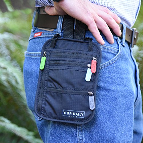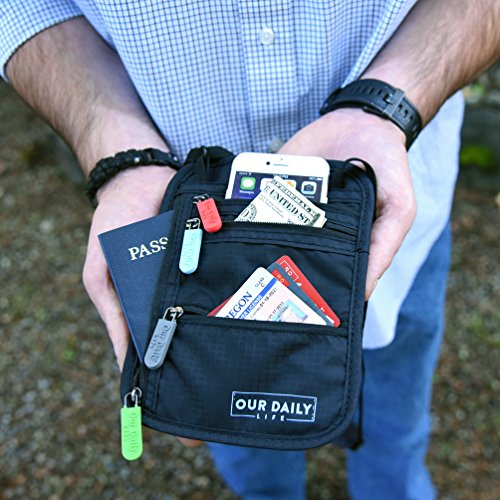 We at "our daily life" love travelling. When on the go abroad or locally, we always take our RFID neck wallet with us. We feel much safer and less worried knowing it is close to us, which lets us take care only of the pleasure coming our way.?? Our wallet is very light - weights only 2.3oz. It is made of strong 210D Ripstop material. Contains 4 compartments for your musts while travelling. Comfortably padded to be worn on your neck, safely, under your shirt, while you can travel freely. Sadly, wherever you are heading there are pickpockets. Our wallet, being hidden under your shirt close to you, makes it an ideal partner for market places, outside concerts, sports events , public transportation and many more. Get our walled and travel safely.