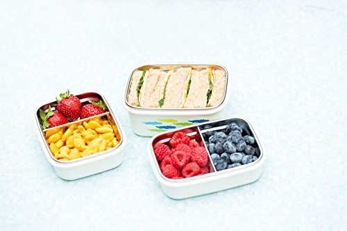[Description] 100% SAFE FOR YOUR CHILD - The ORIGINAL Innobaby stainless steel bento box is made of the highest quality_ food grade 304 stainless steel (18/10 stainless) in South Korea. This product is nontoxic_ BPA free_ phthalate free_ PVC free and lead free. LEAKPROOF EASY ON AND OFF LID - This snack box has a four-hinged airtight lid that is easy to snap open and close even for toddlers. This locking lid seals in freshness and preserves the fresh taste to satisfy all taste buds. INSULATED SLEEVE KEEPS FOOD HOT OR COLD LONGER - Our bento box has a removable insulated shell that keeps food cold/warm for up to 2 times longer than standard containers all while protecting little hands from extreme temperatures. PERFECTLY PROPORTIONED WITH DIVIDER - our stainless steel bento snack box has a capacity of 11oz and dimensions of 5.88`` x 4.25`` x 1.75``. It comes with 1 adjustable divider to make 2 separate compartments. EASY TO WASH - All parts come apart for easy washing. Top rack dishwasher safe for stainless piece. All parts are dishwasher safe_ however_ due to the nature of different materials used in this product_ hand washing is recommended to extend use.
