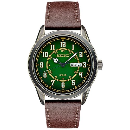 Powered by light energy10-month power reserve once fully chargedDay/Date calendarLumiBrite hands and markersScrewdown caseback43.0mm diameterWater-resistant to 10 bar, 100 meters (330 feet)Caliber V158Aged gold finishLeather strapFeature