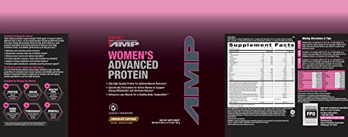 -. Binding : Health and Beauty -. Brand : GNC -. Feature : 31g High-Quality Protein for Optimal Muscle Recovery* / Specifically Formulated for Active Women to Support Energy Metabolism and Hormone Balance* / Optimized post-workout muscle recovery* / Replenishes nutrients often low in athletic women* / Enhances lean muscle and calcium absorption* -. ProductGroup : Health and Beauty -. ProductTypeName : HEALTH_PERSONAL_CARE -. Title : GNC Pro Performance AMP Womens Advanced Protein Chocolate Cupcake 1.75 lbs.