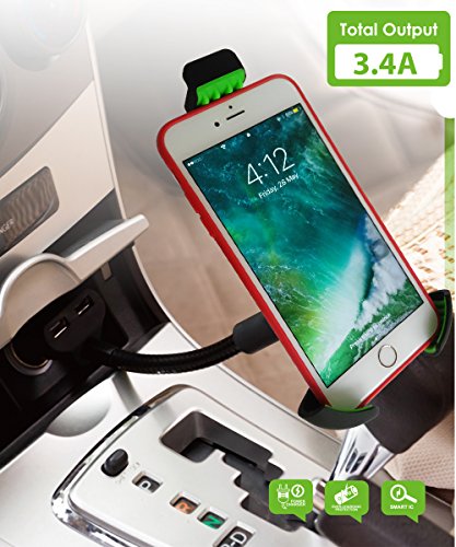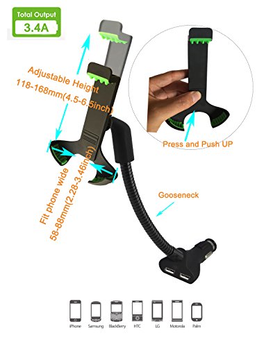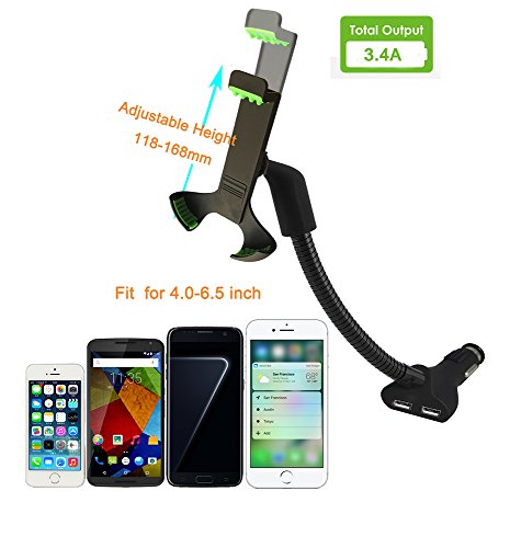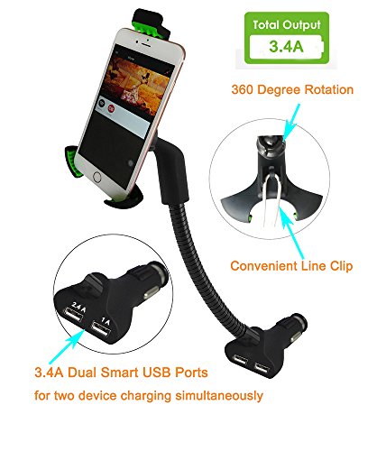 3.4A Dual USB Plugs Fast Charging Car Charger Holder - The 2017 Updated Version Car mount charger holder, Built-in iSmart Charging technology and protect against short circuiting as well as over current and over voltage