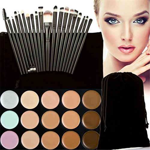 Pure Vie Pro 20 Pcs Make Up Brushes + 15 Colors Cream Concealer Camouflage Makeup Palette Contouring Kit for Salon and Daily Use