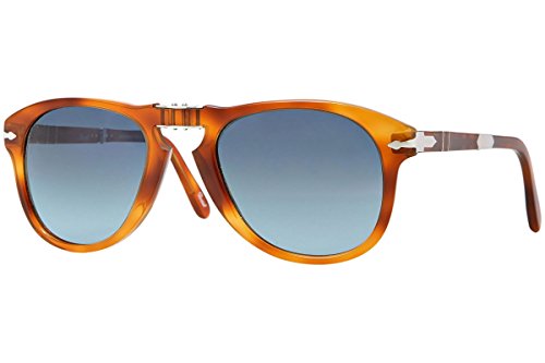 Persol Steve McQueen Polarized 714SM 96/S3 Folding Sunglasses Limited Edition Light Havana Crystal Gradient Blue Polar 52mm