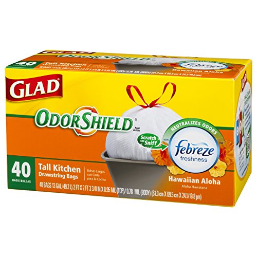 - Title : Glad OdorShield Tall Kitchen Drawstring Trash Bags, Hawaiian Aloha, 40 Count