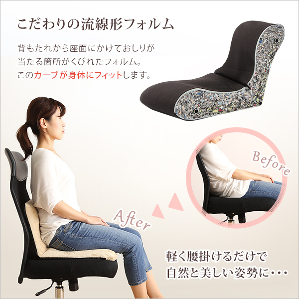●座ると自然に姿勢を意識できる、コンパクトな日本製リクライニング座椅子!