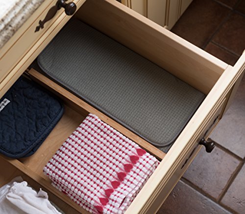 Studio : EPI Publisher : EPI Product Description When tableware or cookware is too delicate to go in the dishwasher must be cleaned by hand, it needs the state-of-the-art protection of the Bellemain Dish Drying Mat ... and you need its easy-care, fold-away convenience. Cushioning Foam Inner Layer Laminated between layers of high tech microfiber fabric, this flexible core of foam helps prevent fragile glasses and dishes from chipping or cracking, as well as protecting your counter from scuffs and scratches. In fact, you can place it under anything that might damage counters, such as kitchen appliances or dish racks. Drinks In Up to 32 Oz. of Water, Then Dries Fast Ultra absorbent microfiber keeps water that drips off your dishes from running all over the counter or onto the floor. This specially woven fabric disperses liquid rapidly from the point of contact, which not only maximizes absorption, it also helps the mat dry out faster. Extra-Large 18" x 24" Size Even big dinner parties are no problem for the Bellemain Dish Drying Mat. It accommodates several large pots and pans, or as many as 16 wine glasses at once. Reversible Design With a different pattern on each side, either of which can be placed facing up, the Bellemain gives you two style options to coordinate with your kitchen. Easy Clean-up and Storage One of the best things about the Bellemain Dish Drying Mat is that it's just as easy to live with when not in use. You can throw it in the washing machine and dryer, or hang it up to dry. To store the mat, save space by folding and stashing it in a drawer. Durable Construction with 1-Year Warranty The Bellemain Dish Drying Mat is made of advanced microfiber fabric securely bonded to the foam cushion and reinforced at the edges with stitched cording. Your satisfaction is assured by a full replacement guarantee. 0