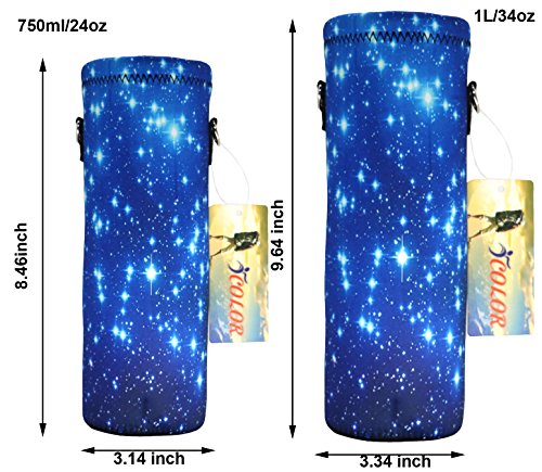 iColor 1L 34oz Water Bottle Carrier : made of high quality neoprene material ;Compatible with :1000ml (1L / 1 Liter) Water Bottle; The material stretches to Compatible with 1000ml / 1L 34oz standard size bottles with the diameter less than 3.34"