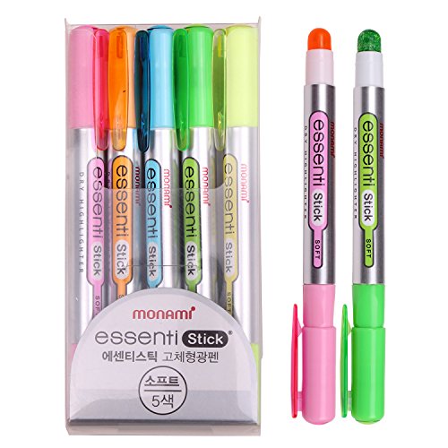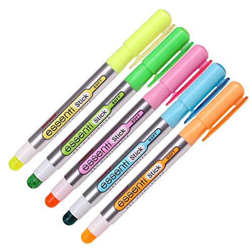 Monami Essenti Stick Soft Pastel Color Dry Highlighter Pen Marker 5 Color (Pack of 5 Pens)