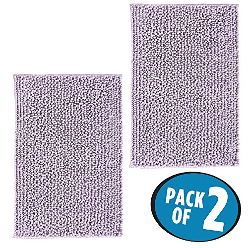 mDesign Soft Microfiber Shag Bath Mat/Rug for Bathroom, Vanity, Bathtub/Shower, Dorm Room - Pack of 2, 30" x 20", Lavender Purple