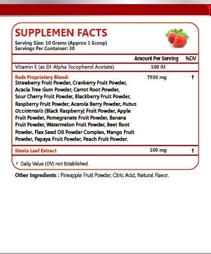 High antioxidant formula with 18 nutritious fruits Each one of the naturally grown, concentrated red food powders selected for PRONUCARE® Red SuperFruit and 18 selected fruits are recognized for its health-promoting, disease-preventing and energy-restoring properties. The diversity and synergy of this unique blend of red plant foods ensures a wide range of nutritional and health benefits.