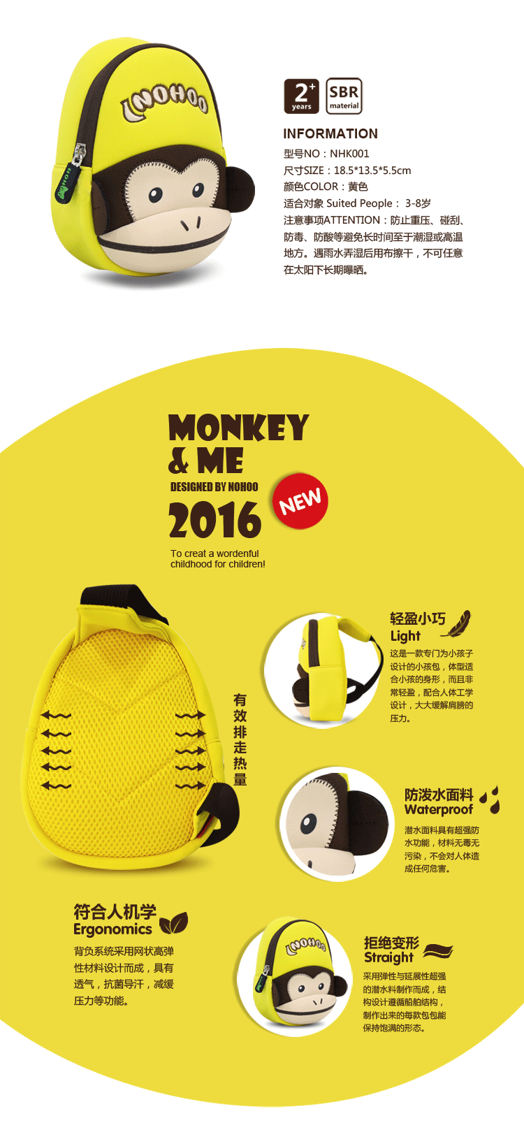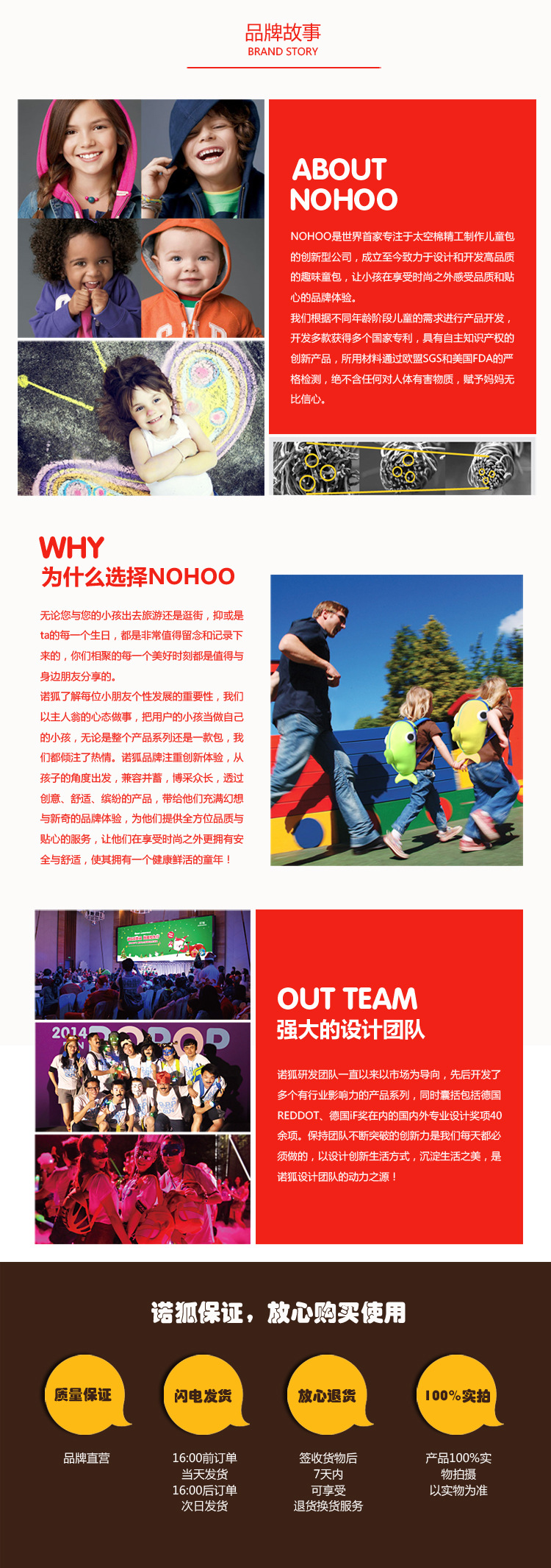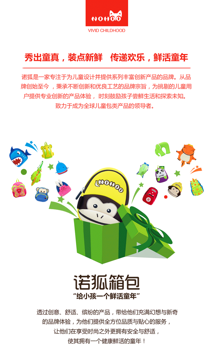 u0026nbsp;诺狐采用独特的Neoprene潜水料,有别于一般材质,潜水料具有良好的柔软性与弹性,防水防潮,质地轻盈等特点,有适用于专业潜水衣及各种运动领域,其立体塑形极具个性的特性更风靡时尚圈。诺狐童包独特的设计与良好的材质有别于一般的儿童包,立体结构剪裁,鲜艳大胆的配色,打材料的特性发挥到淋漓尽致,为我们的用户提供缤纷、舒适、健康的产品体验。