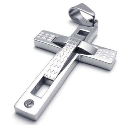 -. Title : KONOV Polished Stainless Steel Cross Mens Womens Necklace Pendant, Silver, 24 inch Chain